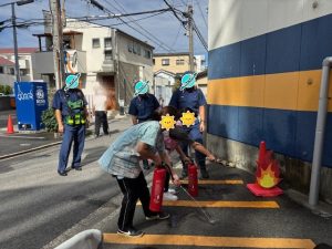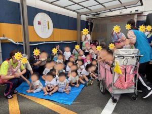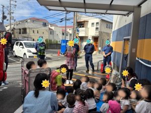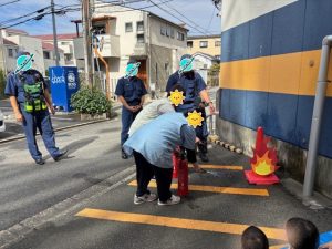 昨日の火災訓練の様子です🚒✨ 給食室からの想定で職員が実際に119番! 時間を計りながら一斉にビルから非難する訓練でした。 水消火器で上手に消火! 子どもたちも「先生がんばれ」と見守ってくれます✊✨ そして先生から子どもたちに「お・は・し・も・く」の大事なお話がありました。 子どもたち、真剣な表情でお話を聞いており、 何か大事なことなんだと感じてくれているようでした。 消防士さんから最後に本日の良い評価◎いただき 上手に出来ていたんだと自信がつきました✊✊✊ 消防士さんの皆さま、お忙しいところを訓練にお付き合いくださりどうも有難うございました🚒👱👱👱✨