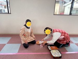 &この日の「AED訓練」の様子です。