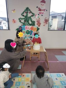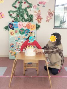 🎄第二園お誕生日会🎄 12月生まれのこちら2名のお友だち🥰 上手にロウソクの火、消せましたね😙