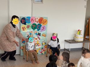 明けましておめでとうございます。 大変遅くなりましたがm(__)m、12月のお誕生会の様子をお伝えいたします。12月は園ごとでした💝