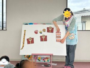 昨日のお誕生会は、お誕生児3名のお祝いでした🎈✨ 今月の先生からの🎁は、 パネルシアター「🍦魔法のアイスクリーム屋さん🍧」