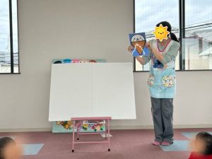 昨日は、こまどりさん達が来てくださり、楽しいお話会がありました。 「ぽんぽんポコポコ、ほんとの大きな動物園🦓」 パネルシアター 「ひよこちゃんのこんなになっちゃった🐣」 手袋シアター「キャベツのなかなら🐛」 内容盛りだくさんで子どもたち、泣く事なくお利口さんに興味津々で見てくれました。 こまどりさんの皆さま、いつもありがとうございます💛 |