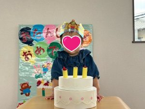 少し照れ気味な表情も、みんにお祝いしてもらって嬉しそうでした。 大きくなられましたね🥰お誕生日おめでとうございます。 先生たちは、これからの成長も楽しみにしてます💝